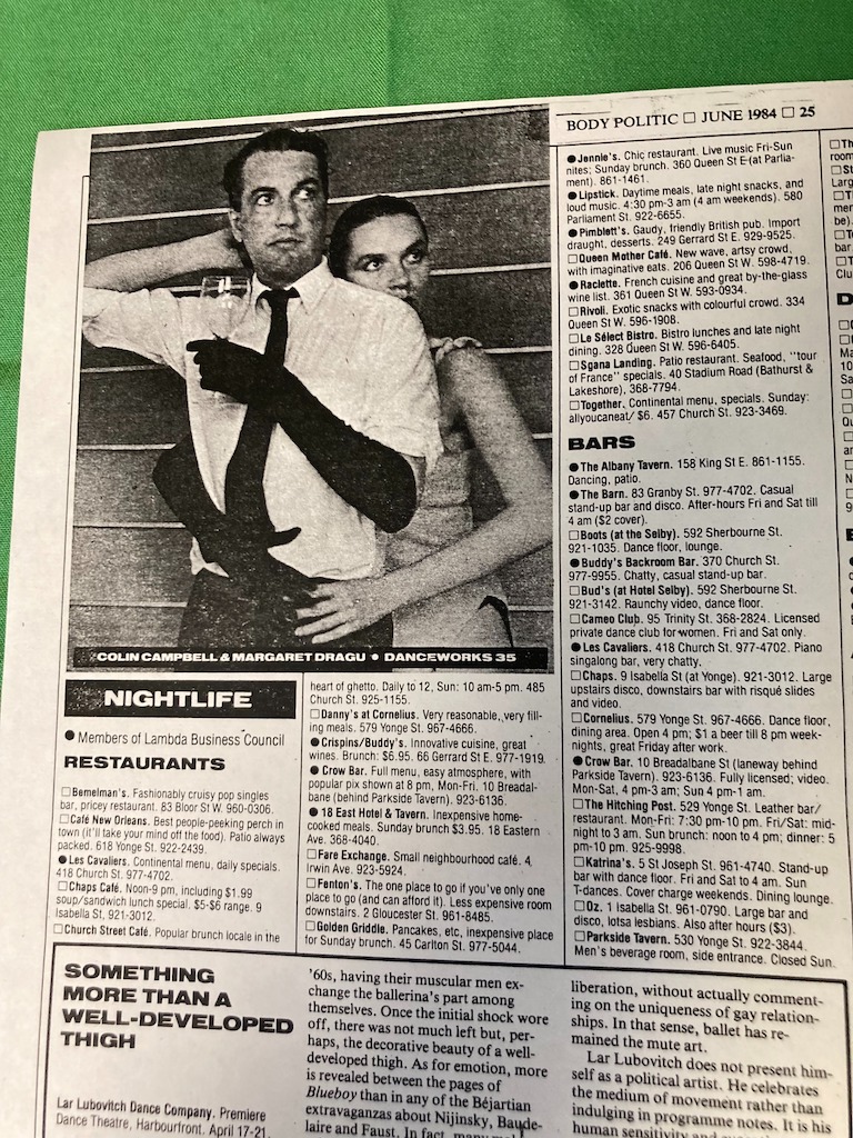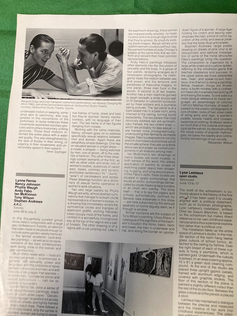 C Magazine, Colin Campbell an Margaret Dragu, Harbourfront, Toronto, DanceWorks Productions